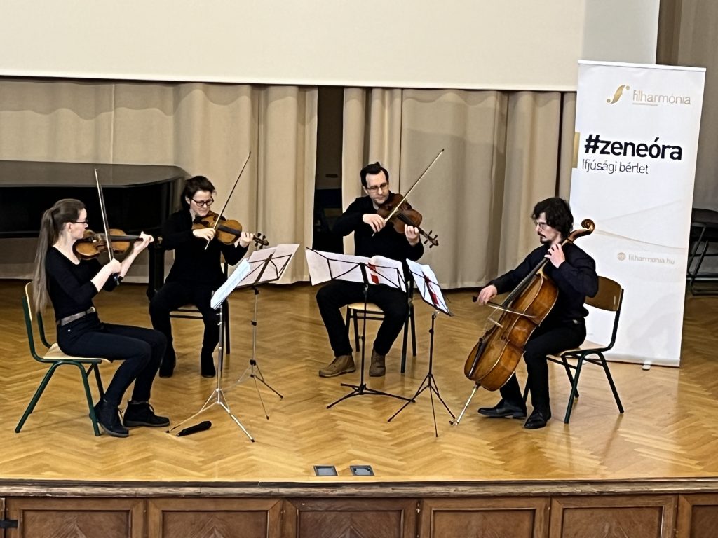 Elhangzott Weiner Leó Divertimentójának első két tétele. Megtudtuk, hogy Bartók egészen Törökországig utazott népzenét gyűjteni, és meghallgathattuk néhány román népi táncát, no meg egy érdekes anekdotát a gyűjtési módszereivel kapcsolatban. Ligeti György Régi magyar társastáncok című művéből is kaptunk ízelítőt, a koncertet pedig a már említett Brahms-darab zárta. A repertoárból látható, hogy az együttes jó érzékkel választotta ki a témakör “slágereit” és kiemelkedő szerzőit.