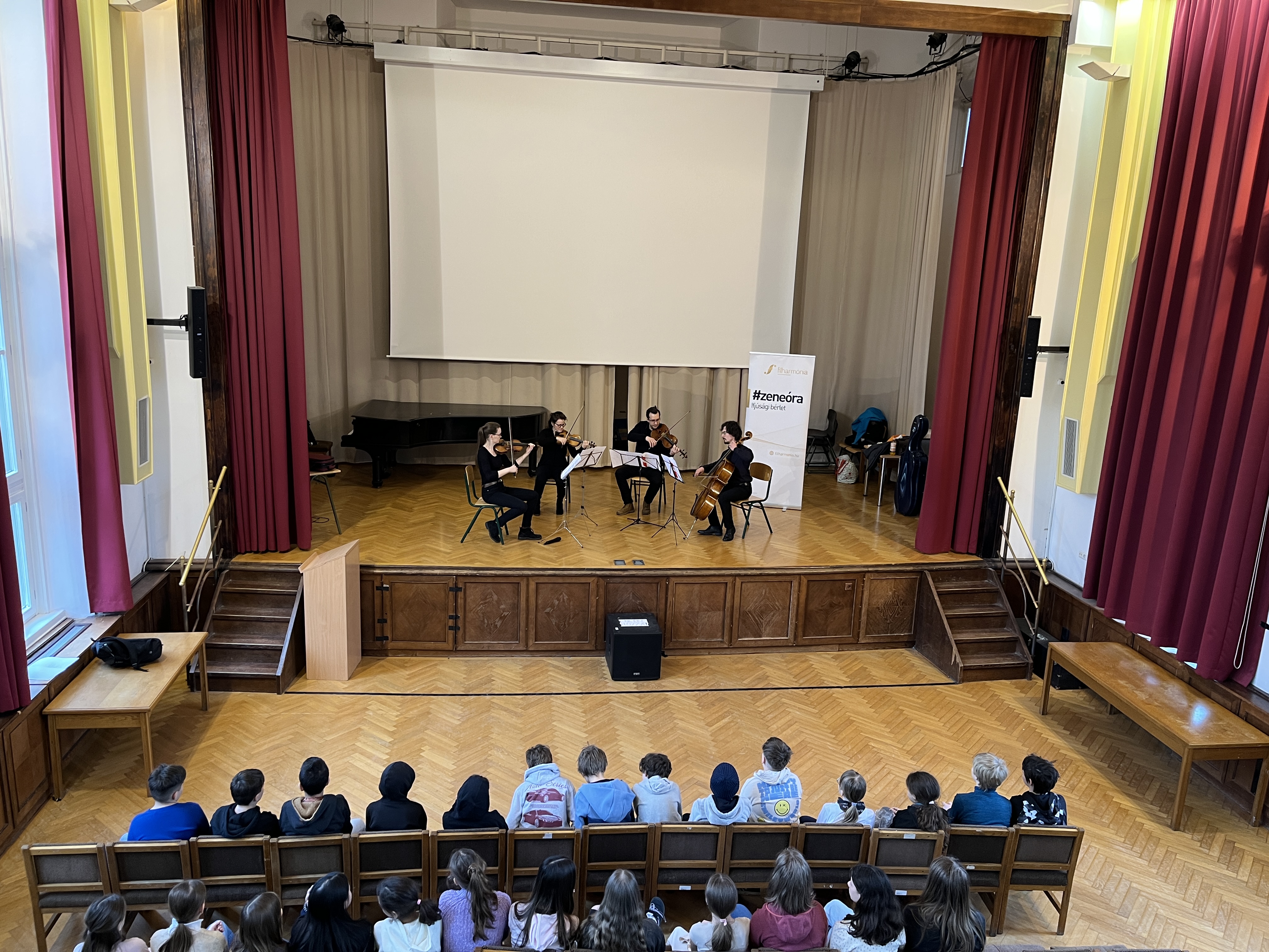 Elhangzott Weiner Leó Divertimentójának első két tétele. Megtudtuk, hogy Bartók egészen Törökországig utazott népzenét gyűjteni, és meghallgathattuk néhány román népi táncát, no meg egy érdekes anekdotát a gyűjtési módszereivel kapcsolatban. Ligeti György Régi magyar társastáncok című művéből is kaptunk ízelítőt, a koncertet pedig a már említett Brahms-darab zárta. A repertoárból látható, hogy az együttes jó érzékkel választotta ki a témakör “slágereit” és kiemelkedő szerzőit.